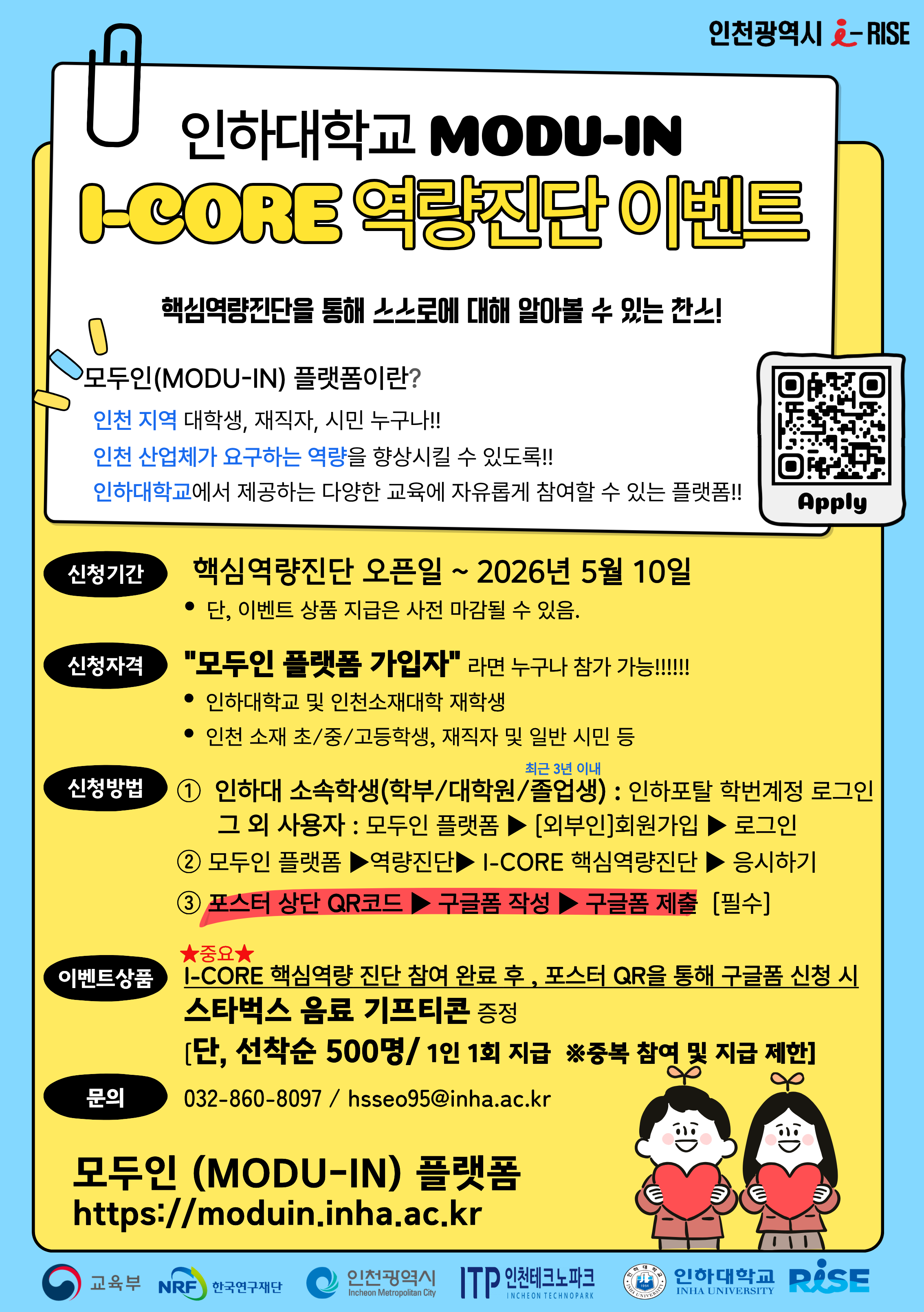 | [인하대학교] 모두인플랫폼 I-CORE핵심역량진단 참여이벤트 | |||